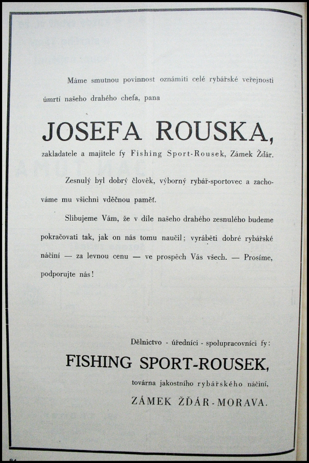 Něco málo z historie f. J.J. Rousek ze Ždáru nad Sázavou. Jaroslav Rousek (železář) v roce 1930 - prodává továrnu svému synovci Josefu Rouskovi. Josef Rousek jakožto náružívý rybář rozjíždí ihned v roce 1931 začátek výroby rybářských potřeb se sto zaměstnanci. Za období okupace